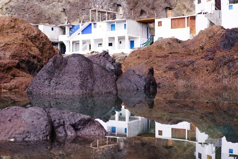 Nous avons repéré un petit village atypique sur l’île : il s’agit d’un petit port et d’un village de weekend pour les locaux, le Porís de Candelaria. Nous sommes en pleine semaine, nous ne devrions donc pas trop les déranger. Mais encore faut il y arriver ! Nous nous mettons en route et quittons la route principale, sorte de nationale, pour arriver à une rue beaucoup plus petite et surtout beaucoup plus pentue. Nous avions lu que l’une des rues les plus pentues du monde est la fameuse Lombard Street à San Francisco, on peut te dire qu’on en a vu des bien plus pentues depuis et celle-ci rentre dans notre top 3 directement 😅 Après 5 kilomètres de route en très forte pente et en têtes d’épingle, nous arrivons au petit parking où nous laissons la voiture.
