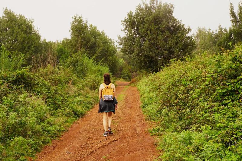 Cela ne nous arrête pas et nous commençons cette petite randonnée qui doit nous amener à un sommet. La balade se passe dans une forêt de conifères, le sol est jonché d’épines et de pommes de pins. Nous arrivons à un chemin qui doit normalement nous amener au sommet mais il est fermé parce qu’il s’est effondré. Nous décidons de continuer plus loin pour trouver un autre chemin et la balade est vraiment belle, nous grimpons dans cette forêt de pins, qui s’arrête soudainement pour laisser place à une ancienne coulée de lave qui a tout brulé sur son passage. Nous sommes au niveau des nuages et nous voyons qu’ils progressent doucement dans les arbres au loin, la brume remonte petit à petit vers nous. Tous les chemins qui permettent l’ascension du sommet sont malheureusement dans le même état que le premier et nous décidons de faire demi-tour pour rentrer avant la tombée de la nuit.