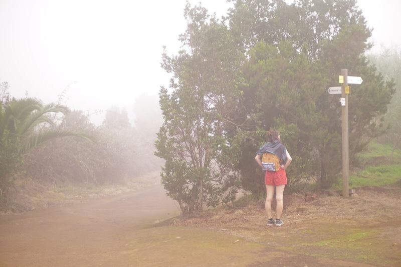 Arrivés à notre point de départ de randonnée, nous sommes au niveau des nuages et tout est dans la brume. On ne voit pas la fameuse Laguna autour de laquelle la randonnée tourne. Pas très grave, la balade est bien sympa sur cette terre rouge et comporte quelques bons petits challenges physiques. On voit aussi des cactus pour la première fois sur l’île.