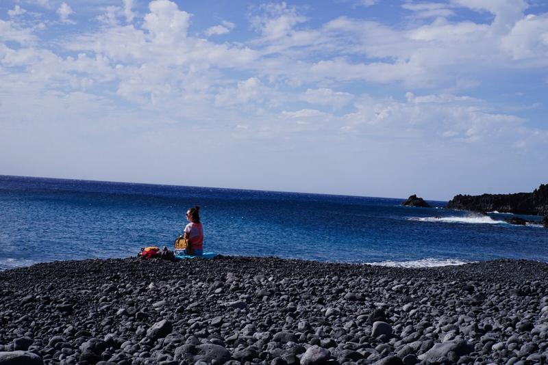 L’après-midi, nous profitons de la météo magnifique et du soleil bien présent pour nous allonger sur la plage et lire. Je tente une petite tête dans l’océan et la température est très bonne ! Il faut dire qu’il fait plus de 30° au soleil et que le sable noir de la plage rejette bien la chaleur emmagasinée, donc un petit rafraichissement est le bienvenu 😊