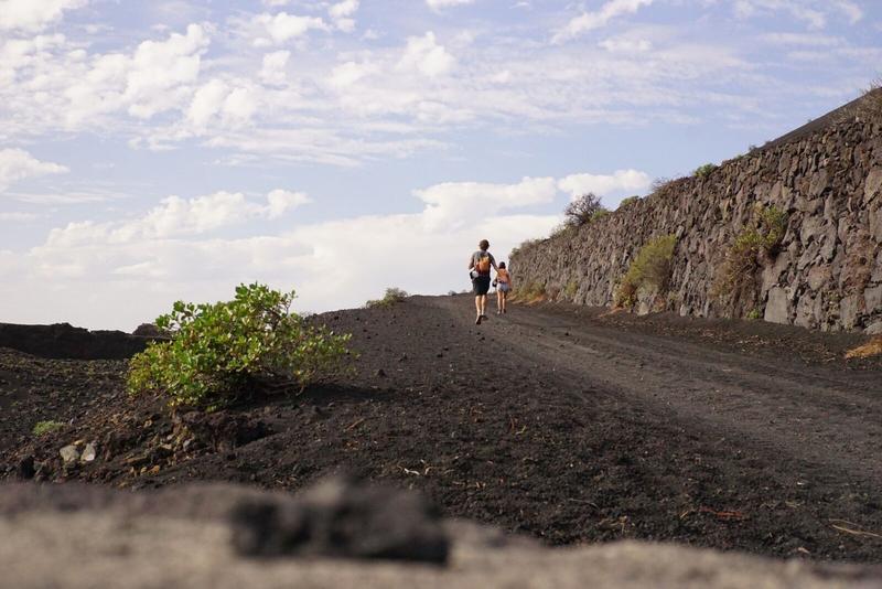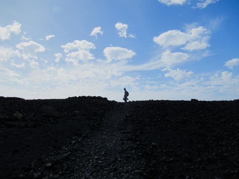 Nous retournons vers le sud de l’île, près des Salinas, pour une randonnée du côté des nombreux volcans. Avant cela, nous nous posons sur la Playa de Echentive pour manger. On a vraiment l’impression d’être sur une autre planète en arrivant sur cette plage de galets volcaniques noirs.