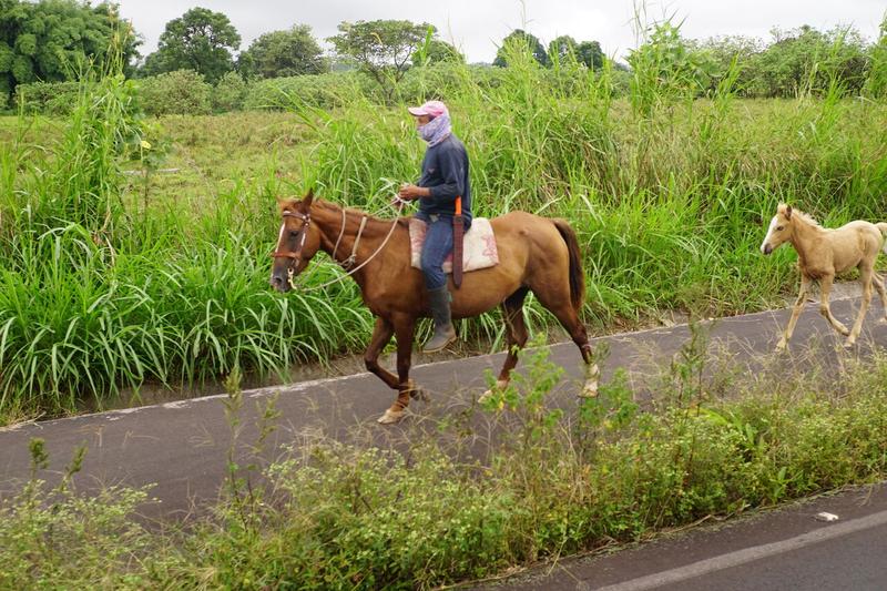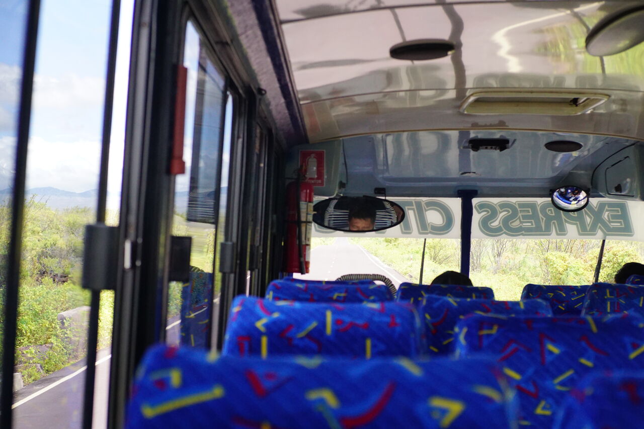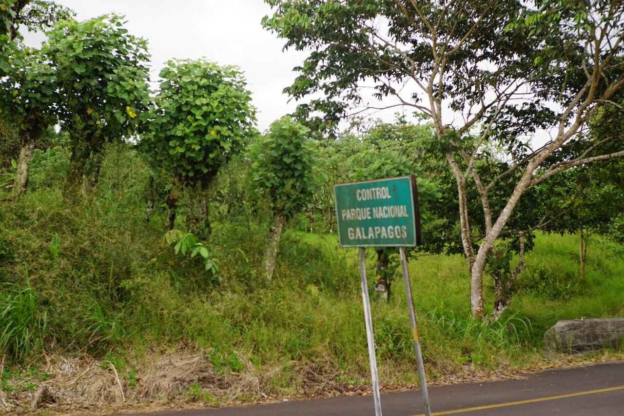 Les Galápagos sont un ensemble d’îles dont les 3 principales sont habitées : Santa Cruz, Isabella et San Cristobal. L’aéroport se trouve sur une quatrième île, Baltra, qui ne contient que l’aéroport. Le voyage n’est donc pas tout à fait fini 😉 On trouve le guichet de bus pour acheter notre ticket (5$), on laisse nos sacs sur le côté pour qu’ils soient chargés dans la soute du bus qui nous conduit tout au sud de l’île. De là, nous embarquons dans un ferry (1$) qui fait la courte traversée du canal qui sépare Baltra de l’île de Santa Cruz. Enfin, nous prenons un autre bus (5$) qui traverse toute l’île de Santa Cruz pour nous amener à la ville principale : Puerto Ayora. Le chemin passe surtout par beaucoup de verdure, des paysages volcaniques et traverse un ou deux petits villages.