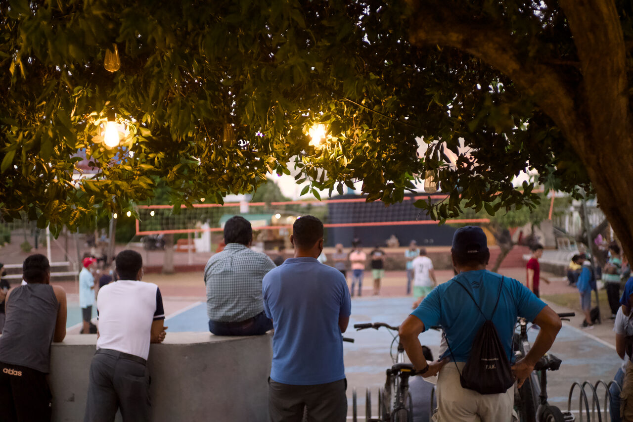 On revient vers la place devant le port et de nombreux locaux se sont rassemblés autour et sur les terrains de volley pour encourager ou jouer.