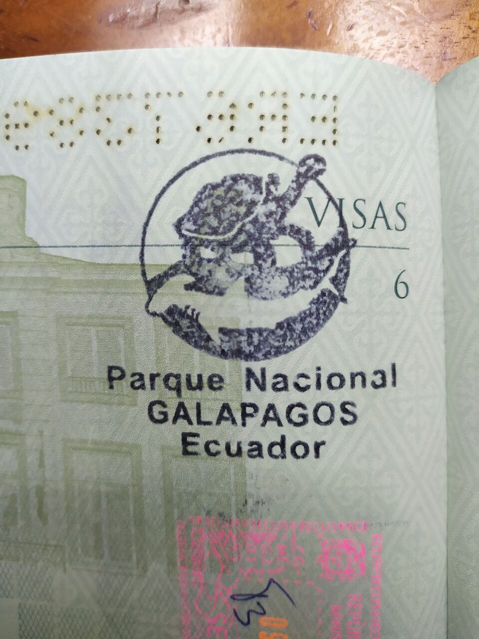 Une dernière vérification de nos passeports et de notre carte TCT et nous recevons le magnifique tampon des Galápagos dans notre passeport, sans aucun doute le plus beau qu’on ait eu !