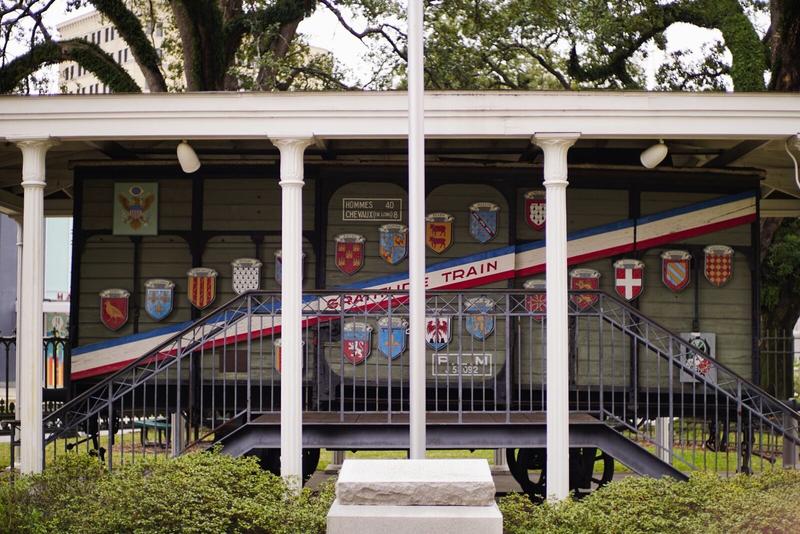 On va ensuite visiter le Old State Capitol, bâtiment qui servait de capitole avant la construction du nouveau et qui est maintenant accessible gratuitement pour le public. On pensait ne pouvoir voir qu’une seule pièce ou qu’un petit bout mais au final ce sont deux étages, une dizaine de pièces et une expo temporaire qui sont proposés en plus de pouvoir monter l’impressionnant escalier sous le plafond en vitraux. On retrouve à l’extérieur un autre wagon du fameux “Merci Train” dont nous avions déjà vu un bout à Jackson.