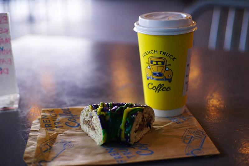 On continue en passant au French Truck Cafe, un petit café au design super sympa qui propose du café New Orleans et du King Cake, ce gâteau aux couleurs locales très répandu en Louisiane. Il est surtout dégusté à la période du carnaval, la tradition correspond plus ou moins à celle de notre galette des rois : celui qui tombe sur le petit bébé en plastique a l’honneur et la tâche d’organiser la fête l’année suivante. Mais c’est avant tout un gâteau sucré, fourré et délicieux !