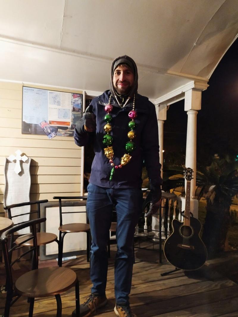 Notre airbnb est une sorte de grande et vieille maison, tenue par un couple et ses 6 enfants et qui proposent plusieurs chambres et une caravane pour les voyageurs. Nous les croisons en sortant et ils nous confirment que beaucoup de choses sont fermées, nous sommes donc invités à nous assoir sur le perron pour prendre un petit verre et un bon bol de gombo délicieux ! Notre hôte nous partage quelques histoires de la culture cajun et joue quelques chansons traditionnelles à l’accordéon. Ces chansons sont en partie en français car les acadiens viennent historiquement d’une région du Canada. On rencontre d’autres voyageurs, certains bloqués ici par hasard à cause du froid et voyageant chacun avec son histoire à travers les Etats-Unis. Ils sont toujours surpris d’entendre que des Européens arrivent à rentrer en ce moment. On les quitte pour rentrer se réchauffer. Il fait -4°C !