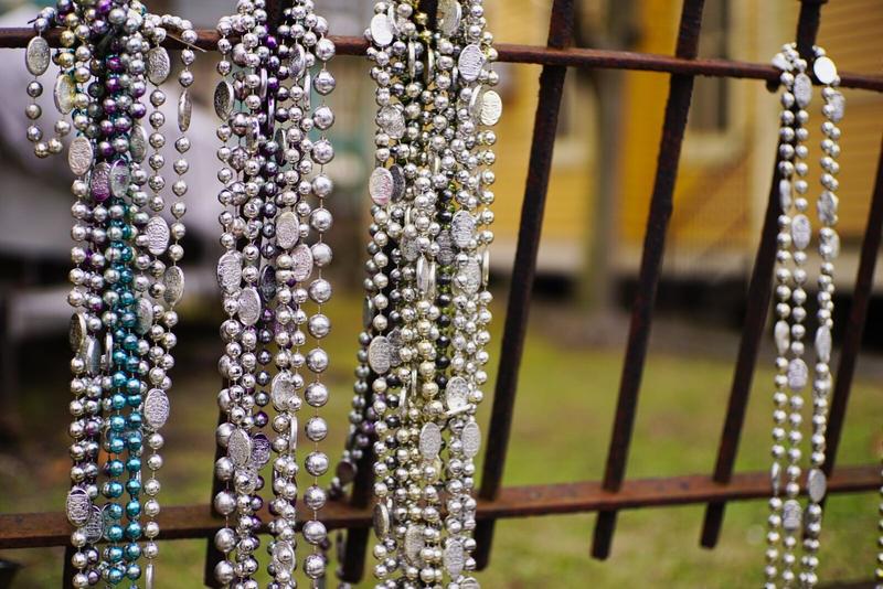 Doucement, les silhouettes des bâtiments de La Nouvelle-Orléans se dessinent. Nous passons du côté du City Park et puis direction le Quartier Français. Ce quartier historique de la Nouvelle-Orléans est très calme, beaucoup plus qu’il ne devrait l’être en cette période : à cause du COVID, le carnaval est annulé et des interdictions plus fortes ont été mises les jours avant le mardi gras pour éviter les rassemblements et les fêtes improvisées. Il faut bien qu’il y ait de temps en temps quelques indices qui nous rappellent que nous voyageons en cette période si spéciale. Cela reste néanmoins une expérience à part et on voit quand même quelques décorations, quelques personnes déguisées et quelques colliers des années précédentes. Un petit peu tristounet, surtout pour les habitants de cette ville, tant habitués à la fête. Nous reviendrons vivre cette expérience une autre fois !