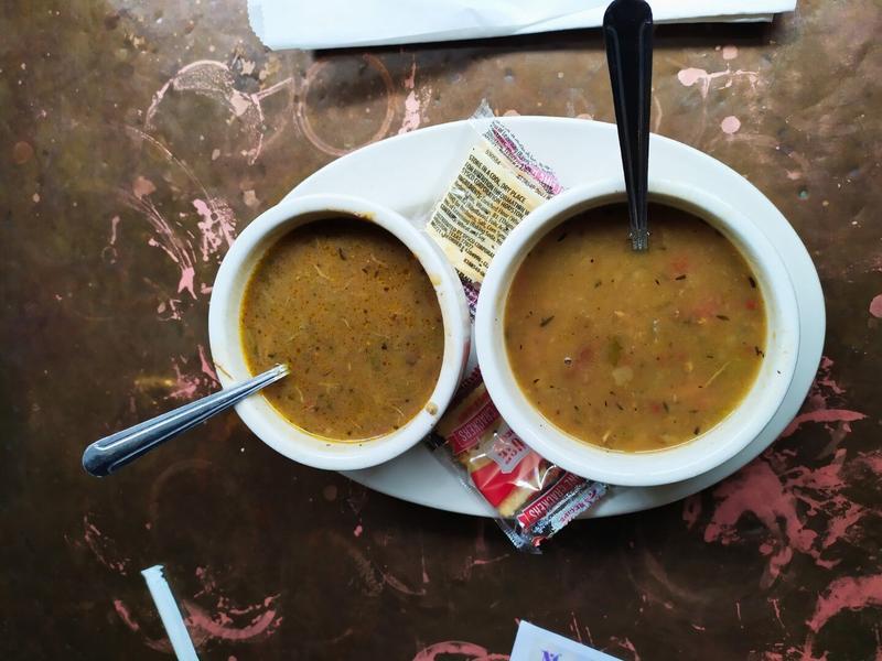 On s’attable dans un petit resto où nous dégustons deux spécialités locales : un gombo (sorte de mix entre la soupe et le ragout, avec du riz et de la viande ou des crustacés) et des beignets saupoudrés de sucre !