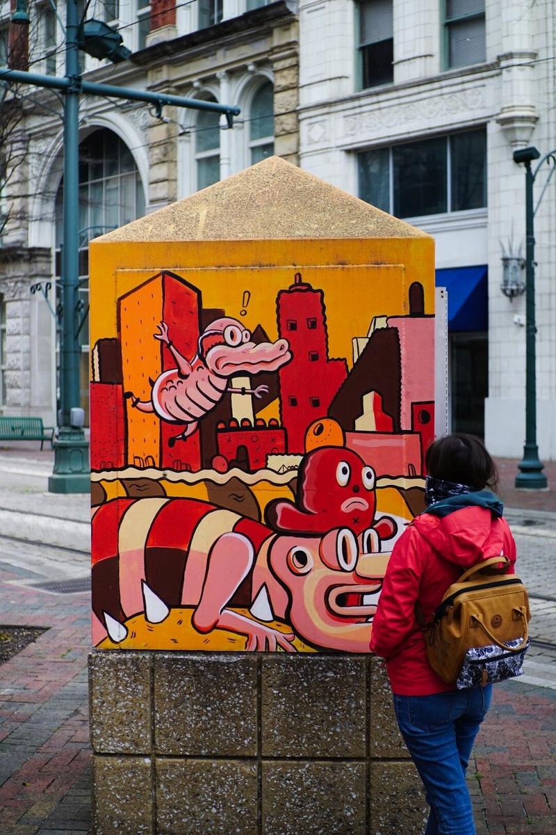 On retourne du côté de Memphis Downtown et comme nous sommes dimanche (on se rend compte qu’on est souvent le dimanche, par hasard, dans les grosses villes), tout est très calme : le trafic est inexistant, le parking est facile à trouver et gratuit, certains magasins ou musées sont fermés mais c’est moins le cas qu’en Belgique par exemple. On se balade dans les rues principales, on découvre le tramway qui traverse la ville. Comme toujours, notre œil est attiré par le streetart qui recouvre et embellit les murs.
