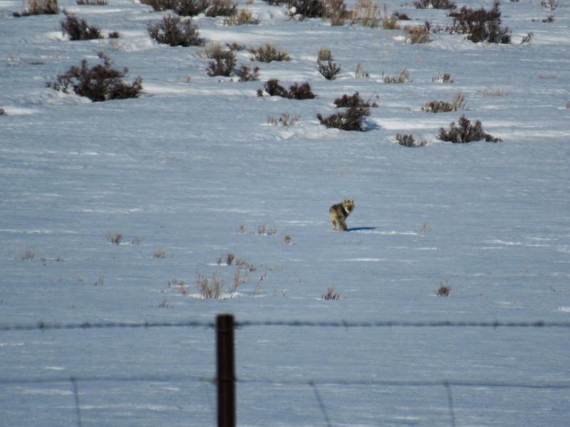 On se prend une petite pluie (acide ? 😅) en continuant notre route, puis on passe par une zone ULTRA enneigée ! Les tas de neige sur le côté sont hyper impressionnants, de nombreuses routes secondaires sont fermées. C’est à la fois impressionnant et beau et on voit même un coyote au loin, qui n’a pas l’air super à l’aise sur la neige.