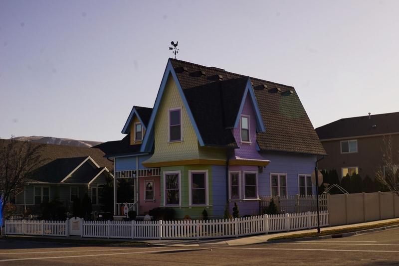 Après un petit arrêt pour grignoter un DQ à Price, on arrive du côté d’un beau quartier de la petite ville de Herriman et de la « Real Life UP House ». Il s’agit d’une maison construite sur le schéma de la maison du film d’animation UP! de Pixar. Ce film est l’un de nos préférés et est certainement celui qui nous a donné le plus envie de voyager et de le faire maintenant, peu importe les difficultés qui se mettent en travers de ce projet (plutôt d’actualité). La maison est magnifique, c’est peu dire et les propriétaires ont même placé des panneaux représentant les personnages, mais en forme d’œuf pour Pâques. On prend évidemment quelques photos et on se promène dans ce quartier où il semble faire bon vivre, où les paniers de basket sont sortis sur la rue, où toutes les maisons sont belles, où les enfants jouent dans les parcs et l’un des parents s’essaye même au golf plus loin… Trop chouette ! Il y a une ambiance très calme et typiquement américaine 😊