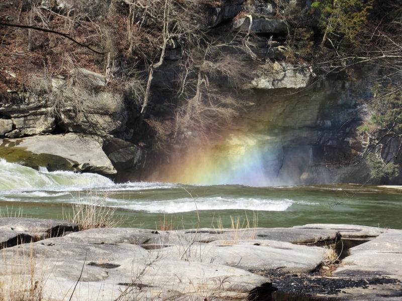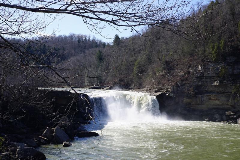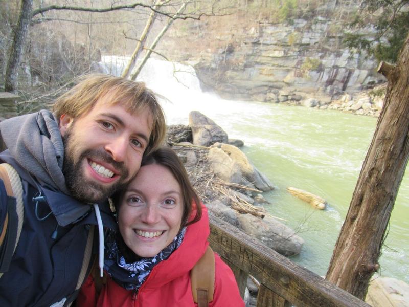 Il fait toujours frais mais le soleil brille et on le ressent directement ! Il nous a conseillé d’aller voir les Cumberland Falls car ces cascades sont très belles et sont appelées ici les « Niagara du Sud ». Les cascades sont effectivement magnifiques et assez impressionnantes – bien que nous n’ayons pas (encore) vu les chutes du Niagara pour comparer – et le soleil joue dans les gouttelettes d’eau en créant un arc-en-ciel. De nombreux panneaux indiquent qu’il est possible de rencontrer des ours sur les chemins de randonnées… Est-ce plutôt le froid ou ces panneaux qui nous ont convaincu de ne pas faire de randonnées ici ce matin ?! 🐻