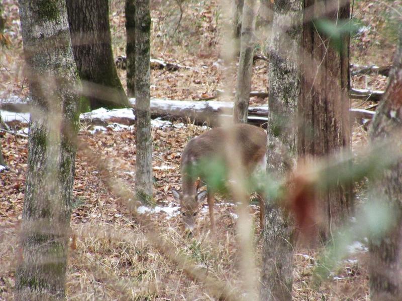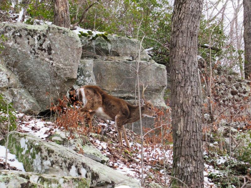 On a les doigts qui piquent assez vite mais on oublie le froid devant le spectacle que le parc nous offre : au milieu des arbres enneigés, on entend un tac-tac-tac. Après avoir repéré le coupable, on se rend compte qu’on a devant nous pour la première fois un grand pic, cet oiseau qui tape l’arbre avec son bec pour y faire un trou et dont est inspiré Woody Woodpecker. Un peu plus loin, on repère un cardinal rouge, dont la couleur flash ressort du paysage. Celui-ci ressemble plutôt à l’un des oiseaux d’Angry Birds. Marie repère ensuite des biches qui farfouillent le sol pour se nourrir, qui nous observent puis continuent. On reprend le chemin qui nous ramène vers le Visitor Center quand on se rend compte un peu au dernier moment qu’un cerf est à quelques mètres de nous et nous observe aussi. Il finit par aller voir un peu plus loin et on retrouve la voiture, encore impressionnés de toute la faune qu’on peut observer dans son milieu naturel en se promenant sur ces sentiers.