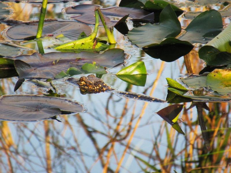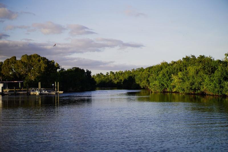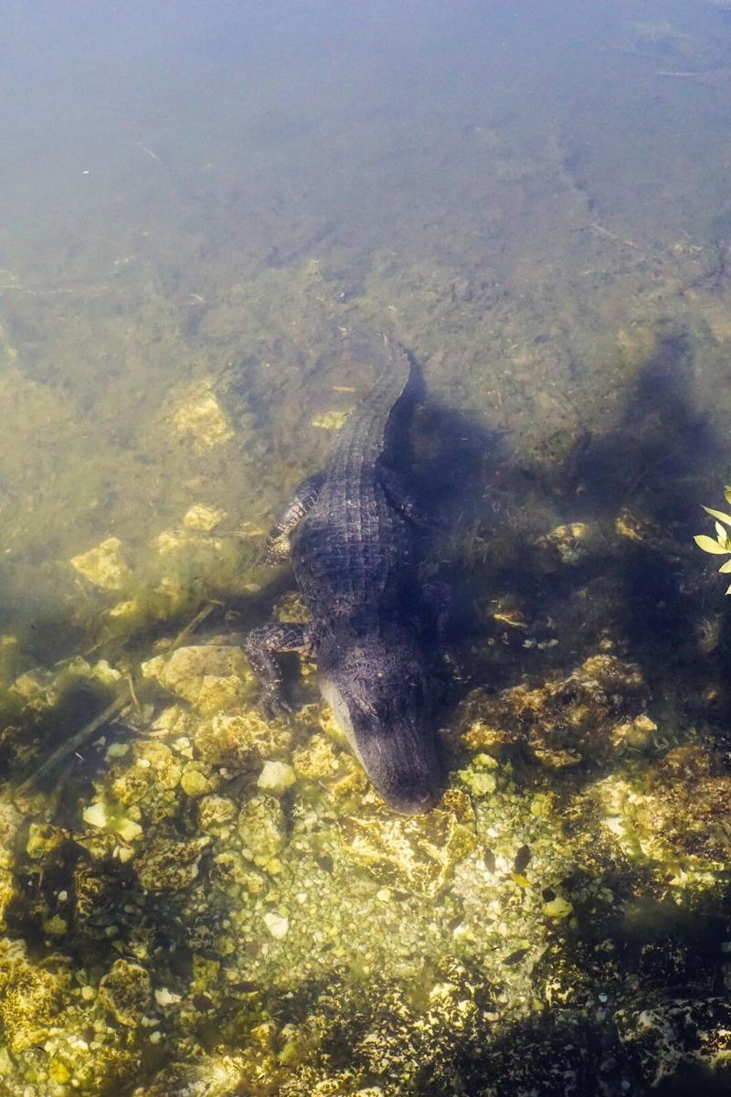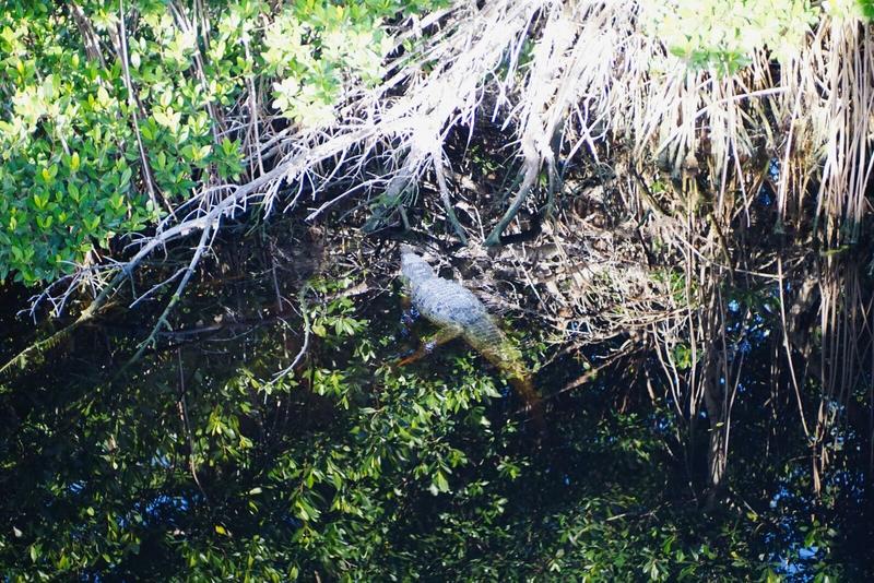 On pousse la route jusqu’au bout du parc et nous arrivons à Flamingo Marina. Rien que la route pour arriver ici est superbe et elle est bordée par plusieurs types de végétations différentes : plaines humides, mangroves, arbres décharnés et tout blancs, des lacs… Arrivés à la Marina, nous allons vers un groupe de personnes qui semblent observer quelque chose dans l’eau : ce sont des lamentins ! Ces gros animaux marins sont assez rares et uniquement présents en saison ici, nous avons de la chance d’en apercevoir. Nous voyons également de nombreux rapaces dont des urubus à tête rouge et même, un peu plus loin, un crocodile !