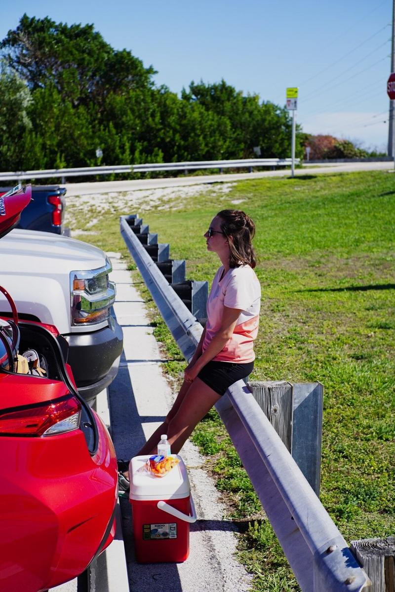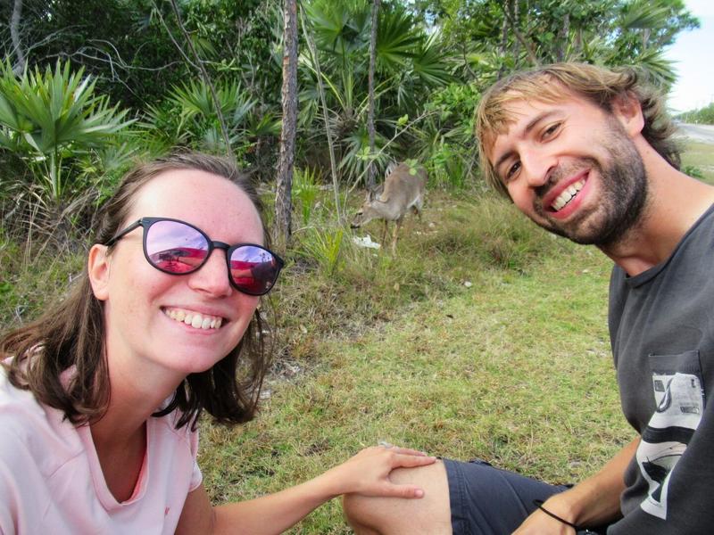 On fait une pause le long de la route pour diner, directement sur la glacière qui nous sert encore une fois de table. On continue notre route, on se perd un peu on revient sur nos pas pour arriver du côté de Big Pine Key où se trouve le National Key Deer Refuge, qui protège cette espèce de cerfs endémique. A peine arrivés dans les premières rues, on voit une biche qui traverse tranquillement. On s’en approche un tout petit peu (distance de sécurité toujours pour ne pas l’effrayer) et on l’observe. Comme nous sommes arrêtés sur le bord de la route, une personne qui passe par là nous demande si on a un souci technique et s’il ne peut pas nous filer un coup de main, décidemment les gens sont trop gentils !