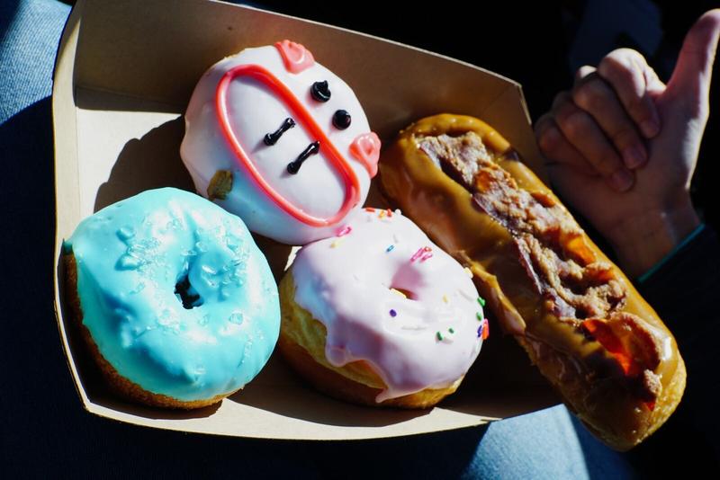On démarre ensuite notre visite thématique de la journée en passant par Rebel Donuts ! Ils font des donuts Breaking Bad, bleus et avec les petits cristaux de sucre qui imitent ceux de la série. On en prend un évidemment et on craque pour 3 autres : le spécial du jour, un cochon (c’est la journée internationale du cochon), un Homer Simpson (blanc classique avec des granulés colorés) et un donut allongé Bacon – sirop d’érable. On les mangera tous les 4 sur la journée, mais inutile de vous dire qu’ils étaient INCROYABLES ! Vraiment délicieux !