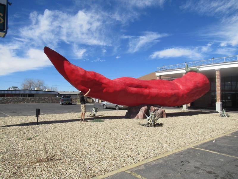 On passe ensuite voir le plus grand piment du monde (c’est une sculpture, pas un vrai). Les Américains sont assez fans de ce genre de choses, ces roadsides attractions qui permettent d’attirer du monde. Ici, il est placé sur le parking d’un motel.