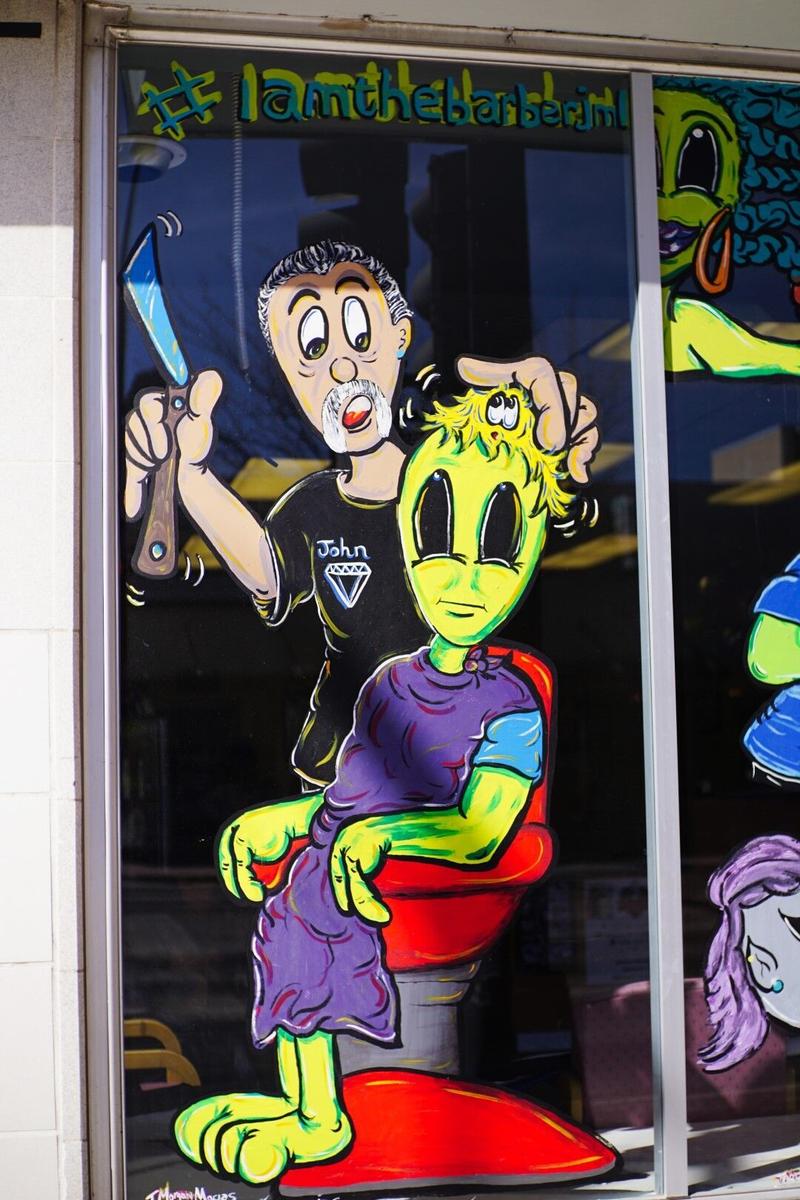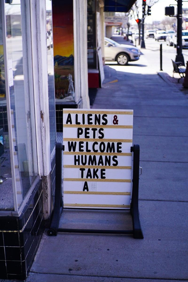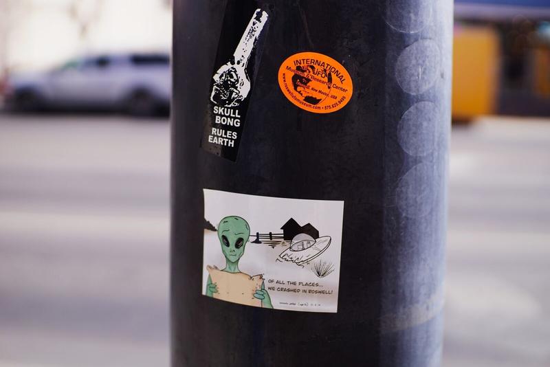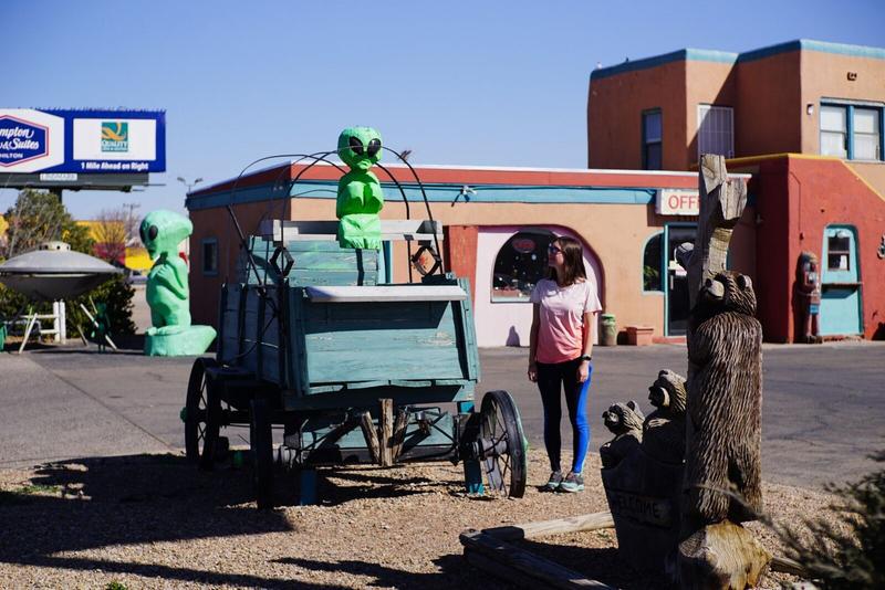 Avant de quitter Roswell, nous partons y faire un petit tour afin de dénicher quelques aliens. Le centre-ville en est vraiment plein et c’est assez fun ! Sur les façades des magasins, dans les rayons, sur les murs, sur les réverbères, partout !