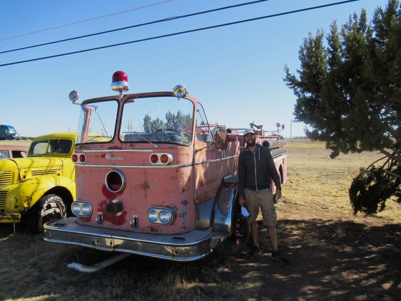 On reprend ensuite l’autoroute et on ressort à plusieurs endroits indiqués Historic Route 66. Ouf, celles-ci sont revêtues et datent plutôt d’un des remaniements du tracé. La route passe par des villages et des anciennes villes éteints, il y a des restes de pompes à essence, de motels, de restaurants et de commerces qui ont fermé et qui semblent avoir été abandonnés en l’état. On voit aussi des carcasses de voitures (dont certaines très anciennes et probablement de collection) dans des états terribles… On comprend assez vite que la création d’une voie rapide, plus neuve, plus pratique, plus en ligne droite a dévié le trafic qui passait par là et a ainsi mis à l’arrêt tout ce commerce qui s’était développé autour de cette route.