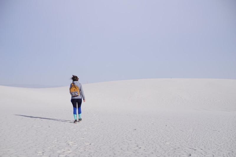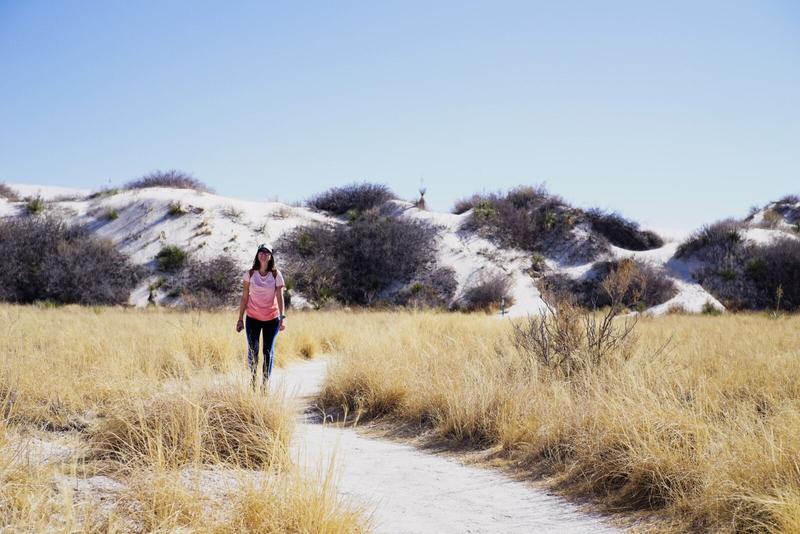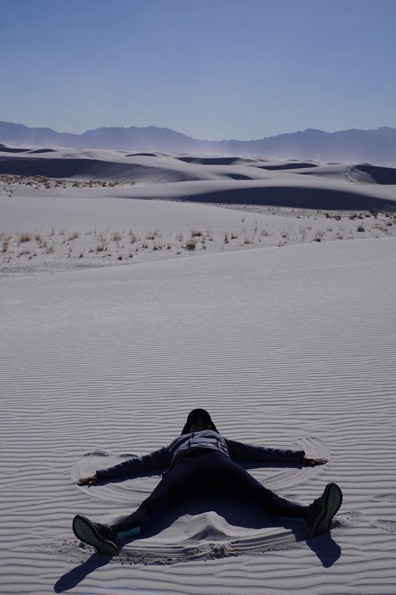 On arrive au White Sands National Park. Comme son nom l’indique, ce parc est constitué de dunes de sable blanc, ça nous nous y attendions… mais le parc est à nouveau ENORME et c’est magnifique ! Plusieurs randonnées sont possibles et nous commençons par le Dune Life Nature Trail, une petite randonnée d’une heure qui donne déjà un très bel aperçu des dunes, de leur immensité. De nombreux panneaux expliquent comment les animaux se sont adaptés à cet environnement extrêmement hostile.