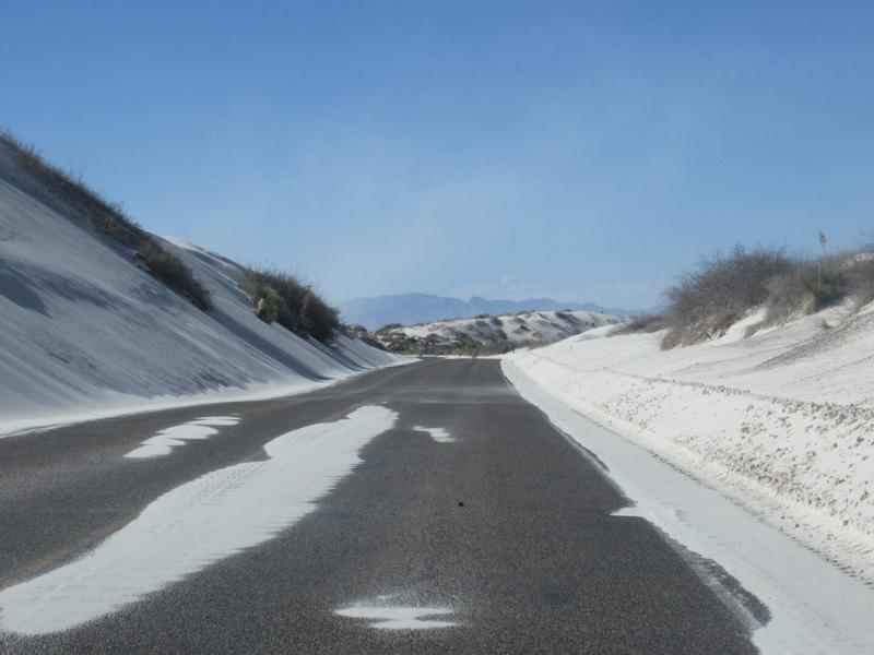 On continue notre route le long de la Dunes Drive, cette piste où l’on roule sur le sable, au milieu des dunes blanches. On a l’impression d’être au milieu de la neige !