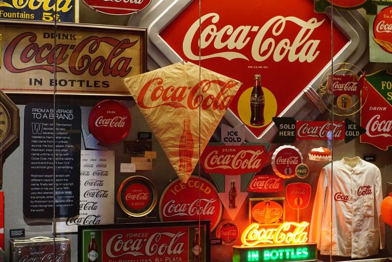 Chance, on trouve une place de parking dans la rue, pas très loin du World of Coca-Cola et comme nous sommes dimanche, c’est gratuit ! Et nous voici partis pour la visite du monde rouge et sucré de cette boisson locale et aujourd’hui connue mondialement. Dès l’entrée, nous recevons une petite canette chacun, puis nous nous laissons guider dans ce musée qui fait la part belle à l’invention de la boisson, à son histoire, à l’entreprise, aux goodies et à la mode qui en découle, au secret de fabrication toujours bien gardé et aux légendes qui tournent autour (ils donnent certaines réponses mais continuent de faire planer d’autres mystères 😉).