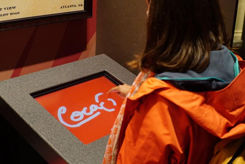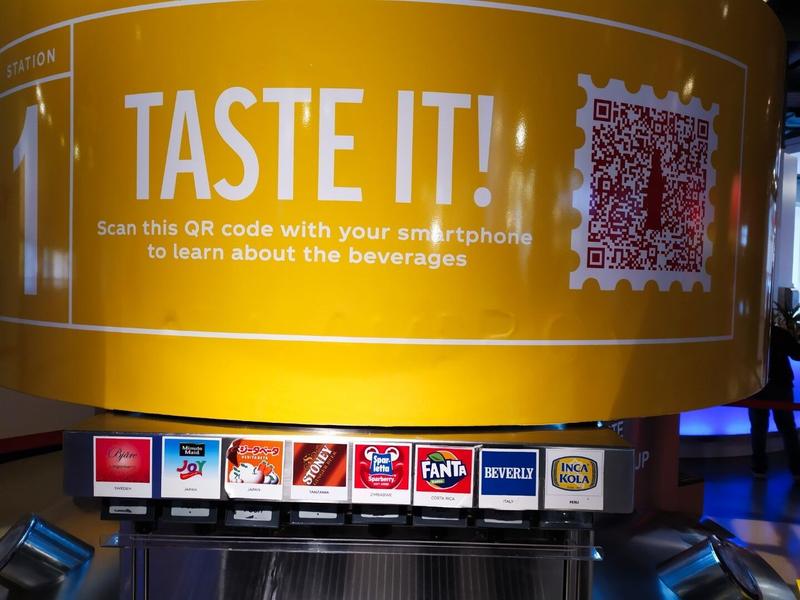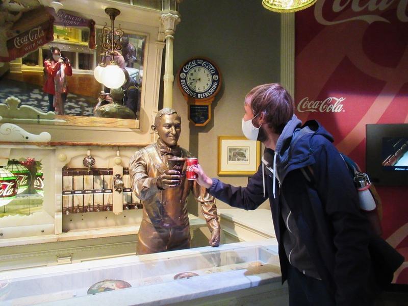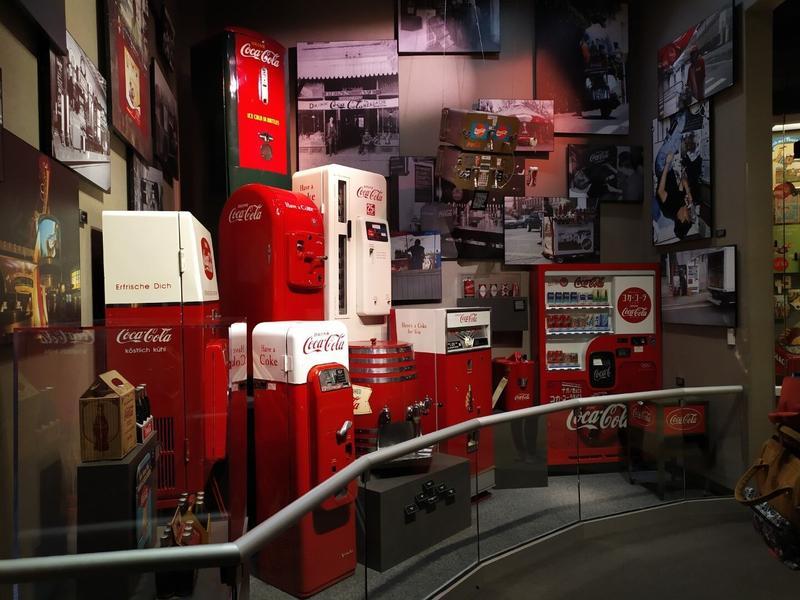 Il y a aussi une chaine de production miniature qui récupère les bouteilles usagées, les rince, les teste puis les remplit de Coca-Cola avant de les fermer et de les envoyer à l’empaquetage. Après un petit film 3D, un atelier « senteur » dans lequel on doit deviner des odeurs qui vont se retrouver plutôt dans l’une ou l’autre boisson produite par l’entreprise, une fontaine de dégustation permet de goûter des boissons disponibles uniquement dans certaines régions du monde : l’Inca Kola du Pérou, le Fanta Kolita du Costa-Rica, le Sparletta du Zimbabwe et une boisson à base de vanille de Madagascar. La fin de la visite se fait par le passage dans l’immense gift shop où il y a à peu près tout ce qu’il est possible de faire à l’effigie de Coca-Cola.