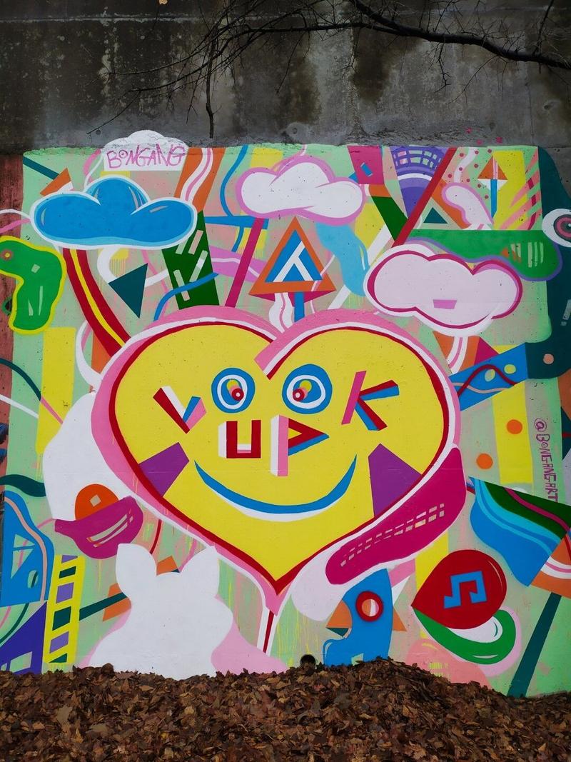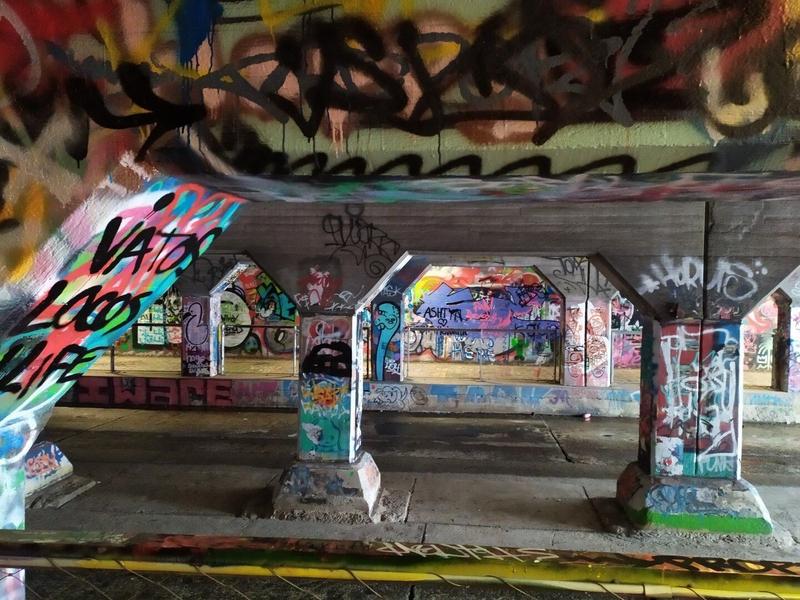 Après avoir vu tant de rouge, on se dirige du côté du Krog Street Tunnel, un lieu haut en couleurs dont l’intérieur et les murs alentours sont couverts de fresques et de graffitis.