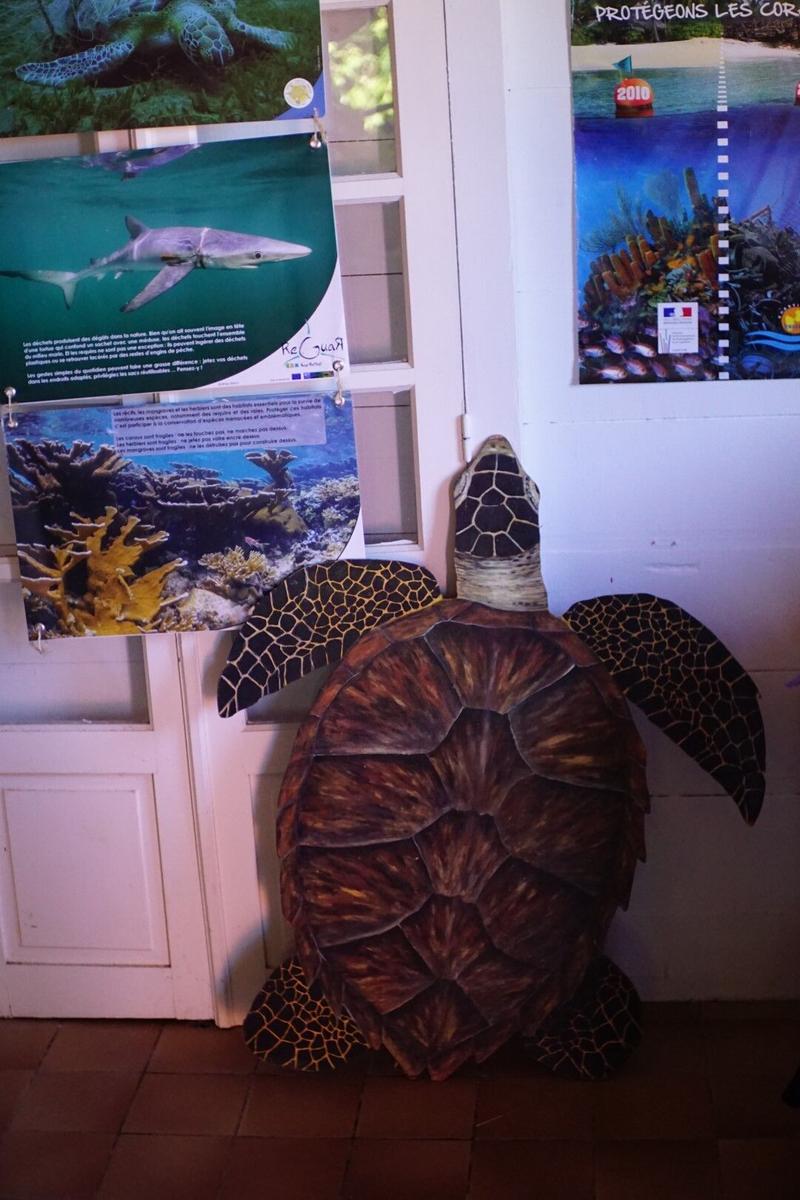 Aujourd’hui, nous descendons tout au sud de l’île, du côté de Vieux-Fort, pour rendre visite à l’association Kap Natirel. Il s’agit d’une association de protection de l’environnement spécialisée sur les espèces marines. Initialement concentrés sur la tortue en Guadeloupe, ils ont également lancé ReguaR, un programme de rencencement de raies et de requins dans toutes les Antilles. Ils organisent de nombreuses activités dans toute la Guadeloupe, pour surveiller les pontes (en saison), nettoyer les plages, informer et travailler main dans la main avec les guadeloupéens pour une meilleure protection de la biodiversité marine, observer les habitats des tortues pour comprendre les dégradations, informer les touristes de passages pour les sensibiliser, etc. Nous sommes très bien reçus par Alice et Anaïs qui nous explique qui ils sont, leur fonctionnement, leurs impacts, leurs difficultés…