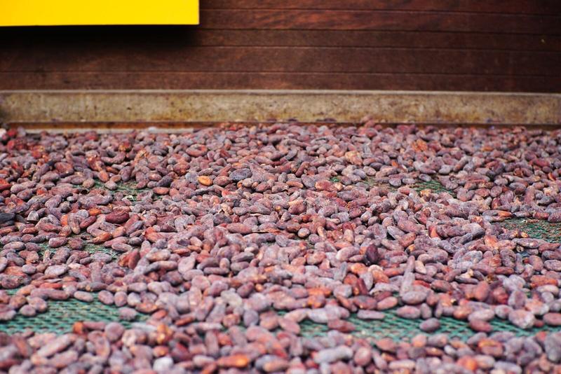 Ce matin, le temps est un peu plus gris et nous partons en direction de la Maison du Cacao. Nous sommes passés quelques fois devant et leur pancarte nous donnait envie d’aller les visiter. Nous arrivons et sommes directement intégrés à un groupe qui attendait les explications et, bien sûr, la dégustation !