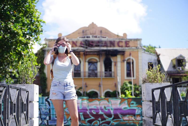 Nous nous garons autour de la fameuse place de la Victoire, grande place ronde face à la mer de laquelle on aperçoit un bout du Mémorial ACTe (Centre caribéen d’expressions et de mémoire de la Traite et de l’Esclavage). On se laisse guider par notre instinct (comprendre « on se perd ») dans les rues. Elles témoignent à la fois d’une certaine difficulté à les entretenir, dû aux cyclones qui frappent le pays chaque année et peut-être aussi par pauvreté, et à la fois belles et remplies de couleurs à l’image de certains bâtiments remis à neufs, d’autres recouverts d’immenses fresques colorées.