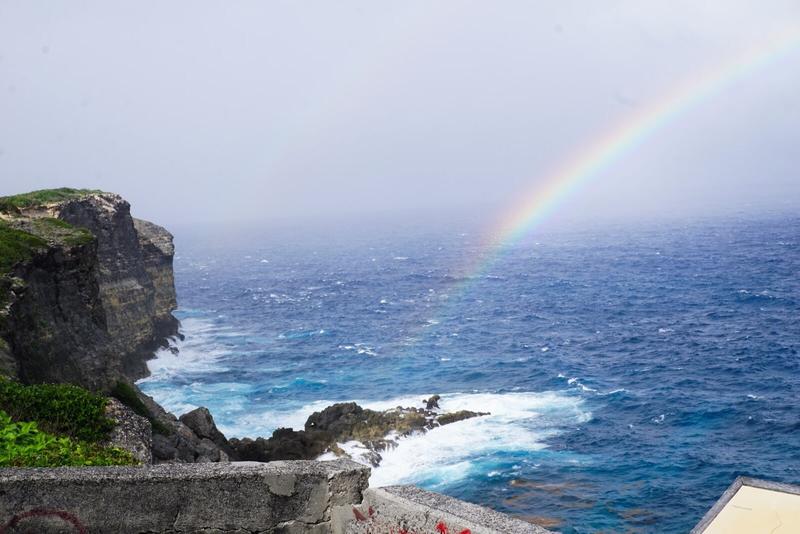 Nous repassons du côté de la Porte d’Enfer, avec sa vue toujours aussi impressionnante sur l’océan et sublimée par un arc-en-ciel (et même un double arc-en-ciel en y regardant bien).