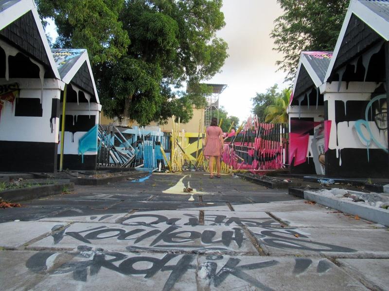 En repartant et en passant par Vieux-Habitants, nous tombons sur un espace qui a été transformé et réhabilité pour un projet local de street-art et le résultat est vraiment cool !