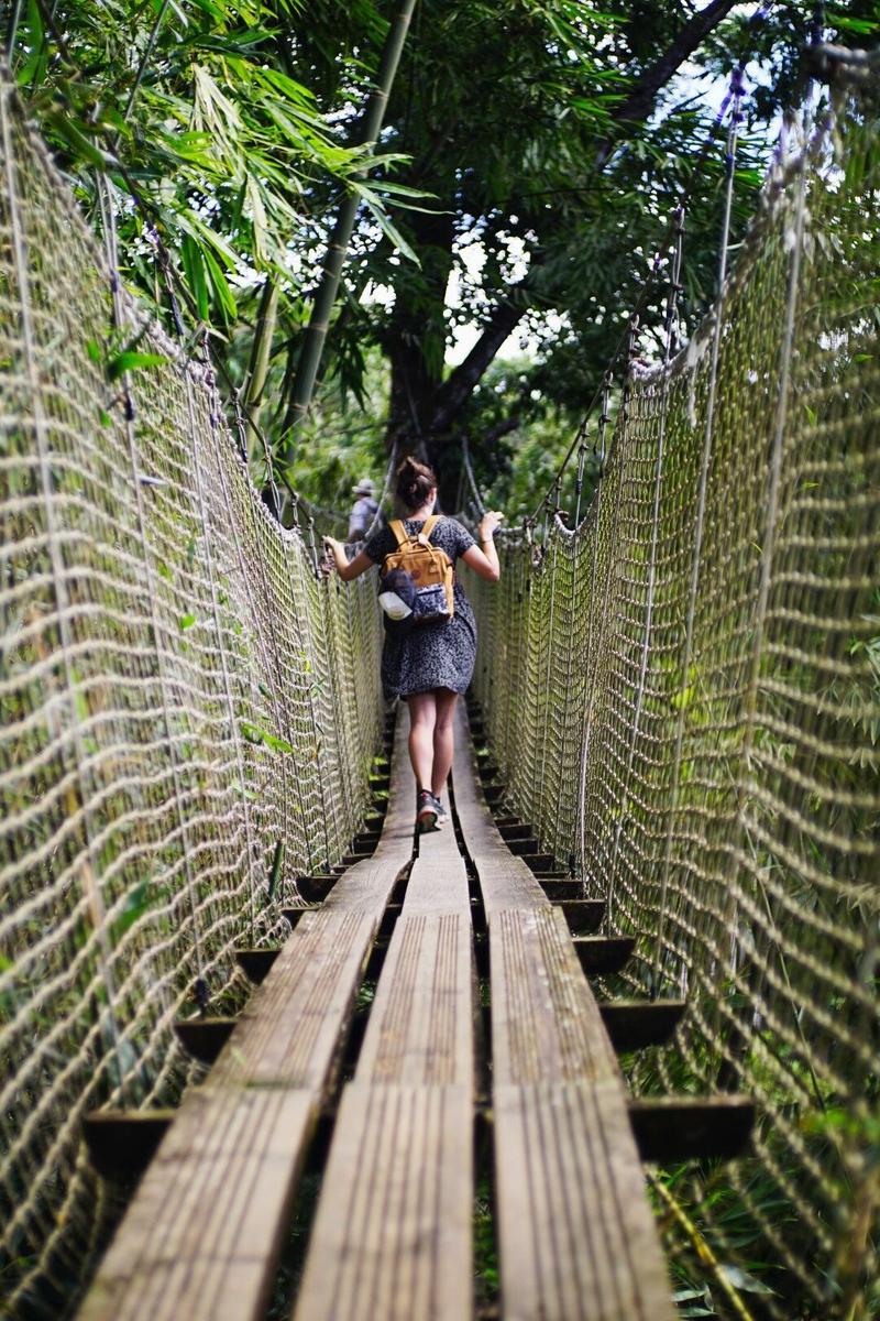Le sentier termine sur un pont suspendu qui permet d’avoir une vue aérienne du jardin, l’expérience est plutôt sympa malgré la file qu’il y a pour y arriver. Ils ont même prévu une petite plaine de jeu pour qu’Arthur (et, soyons honnêtes, Valentin) s’éclatent 😊