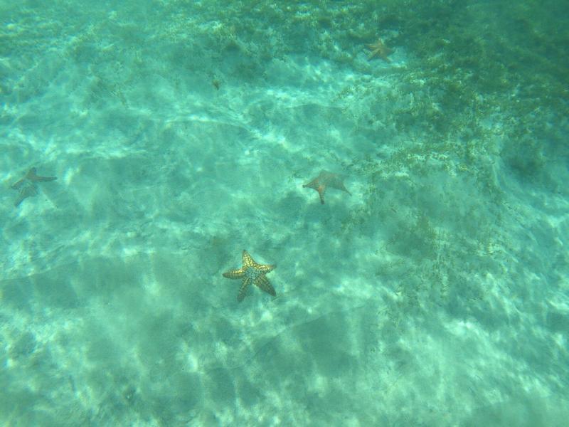 Malgré cela, le snorkeling était vraiment sympa : nous avons pu observer de nombreux bans de poissons de toutes les tailles, des « oursins patates », de beaux poissons colorés et, pour la première fois, des étoiles de mer ! Des jaunes, des rouges et de toutes les tailles. Pas de tortues pour cette fois, mais nous repartons des étoiles plein les yeux !