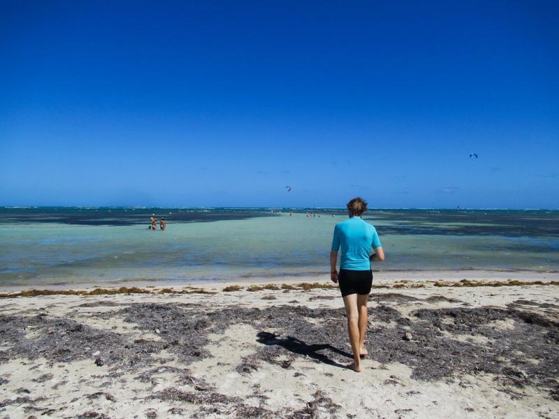 Nous nous mettons ensuite en route vers la Pointe Faula, au sud-est de l’île. Cette plage a la particularité de faire face à des fonds blancs : cela signifie qu’il est possible de marcher depuis la plage sur 300m en ayant toujours l’eau sous la taille… c’est calme et c’est surtout super beau ! L’eau a des reflets de plusieurs tons de vert magnifiques. Cette particularité semble aussi être appréciée par les kitesurfeurs qui sont nombreux. Le snorkeling est moins convaincant, par contre, il n’y a pas grand-chose à voir et l’eau est très trouble, vu que le fond est remué par les personnes qui marchent.