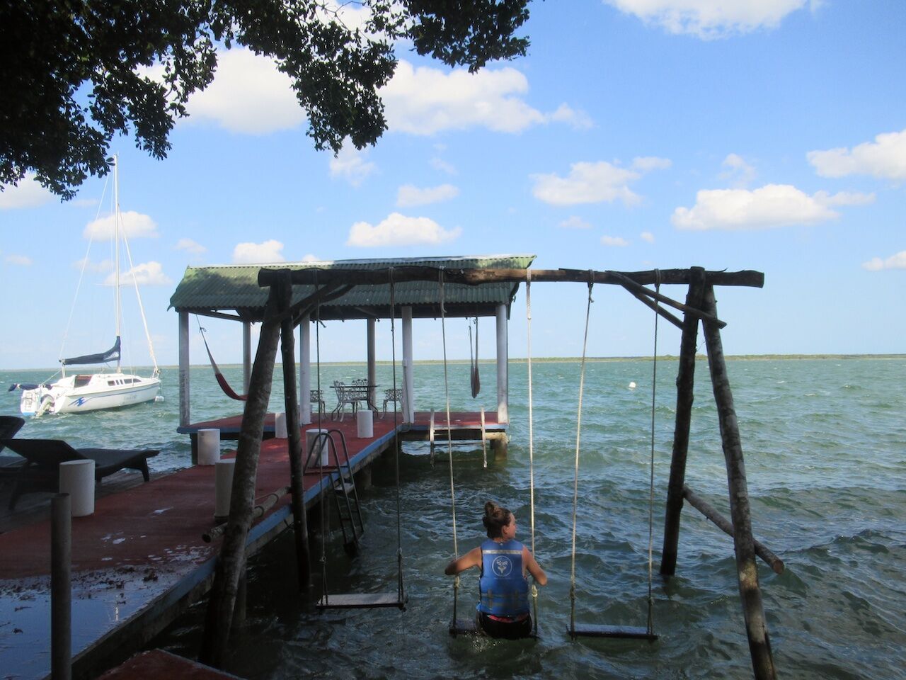 La vue sur cette terrasse est vraiment toujours aussi folle et le lagon (même sans avoir les fameuses 7 couleurs et l’eau turquoise habituelle) est superbe. On reçoit un message de Benjamin qui nous conseille d’aller faire un tour à Sac-Ha avec une photo de l’eau de ce côté-là… OK, c’est notre programme de l’après-midi !
