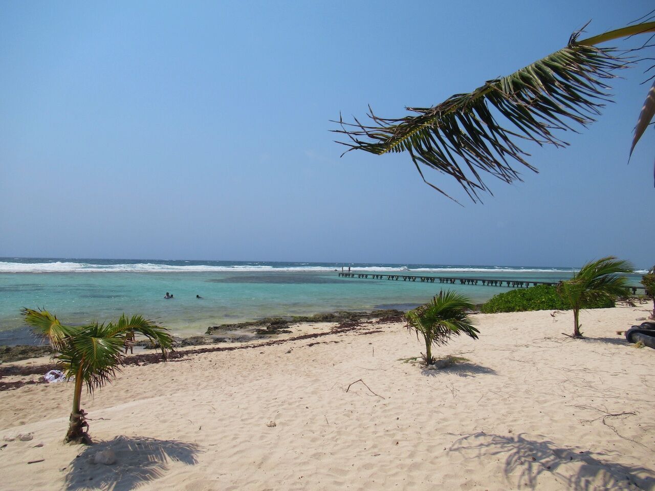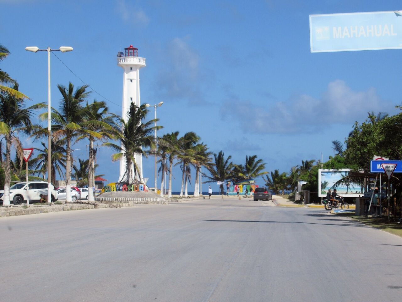 Après une petite matinée sérieuse à faire quelques démarches et obligations, nous nous mettons en route vers la plage publique de Mahahual, en espérant qu’elle soit mieux préservée des sargasses. On reparcourt cette jolie petite route qui longe l’océan dans une atmosphère vraiment sympa. On remarque également que le long de celle-ci, parmi les hôtels qui s’approprient une bonne partie de la plage de la ville, on trouve des familles qui habitent des cabanes faites de tôles et de bois et qui semblent ne pas avoir grand-chose.