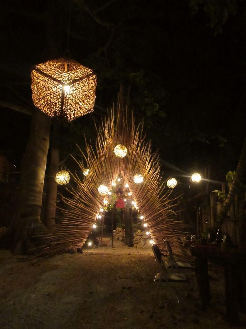 On profite de la terrasse, de la lagune et du vent un peu plus frais avant de se mettre en route pour trouver un petit truc à manger. Après plusieurs essais, on arrive devant le restaurant Nixtamal, réputé et très recommandé mais assez chic… Bon, c’est probablement le seul endroit où on peut se faire un craquage comme ça, grâce aux prix du Mexique, on y va ! Le lieu est incroyable, un feu de bois nous accueille, le jardin est magnifiquement éclairé, les tables sont faites dans des tranches de vieux troncs… Bref, un endroit qu’on ne pourrait clairement pas se payer à Bruxelles. On reçoit des nachos accompagnés d’un trio de sauce (doux, acide et piquant) et nos boissons : jus de maracuja pour moi et kombucha – spritzer (kombucha, vin blanc, goyave, miel) pour Marie. On craque ensuite tous les deux pour le saumon et sa croute au chocolat. Difficile à décrire tellement c’était délicieux ! Le saumon est ultra-fondant, la croute au chocolat et graines de chia fonctionne vraiment bien et apporte une touche de sucré-salé comme ils aiment ici et qui nous a bien plu. Les fruits et légumes, en accompagnement, sont variés (dont du cactus) et bien cuits et assaisonnés. Et enfin les sauces (tomate, guacamole et une sorte de mayonnaise à l’orange) sont terribles. Bref, une soirée délicieuse pour 20€ par personne, un prix bien raisonnable quand on voit la qualité, la quantité et l’originalité de ce qu’on a dégusté !
