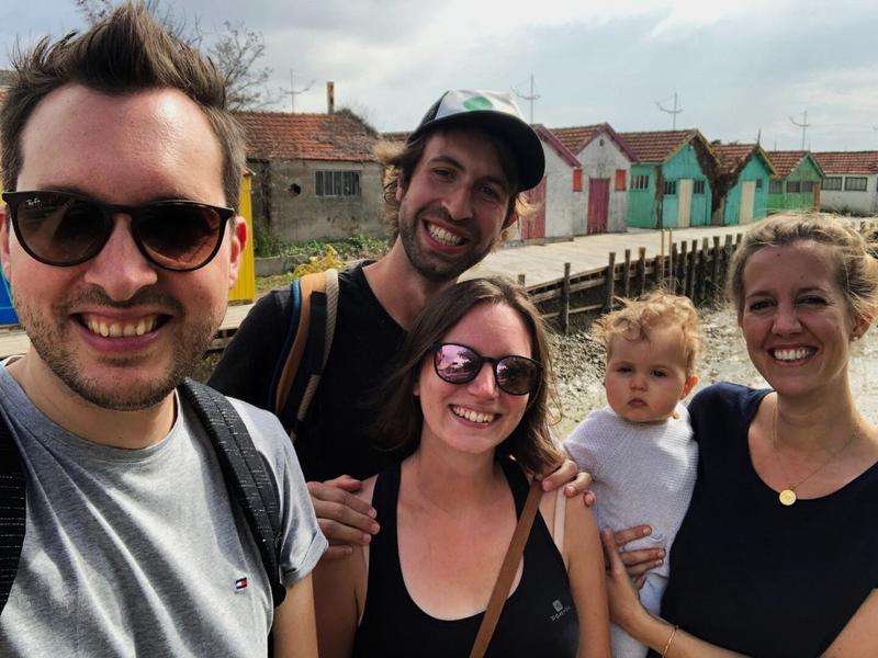 Sur le chemin, nous passons par des villes nommées Saint-Denis, Saint-Pierre, Saint-Gilles… ça nous rappelle un petit peu la Réunion tout ça ! 😊 Nous revenons ensuite vers le début de l’île : nous avons rendez-vous aujourd’hui ! C’est à « Le Château-d’Oléron » que nous retrouvons Zouzou, Gaëlle et Phil, tout droit venus de Bruxelles pour profiter de la région et se reposer un peu (c’est raté, dès le lendemain de leur longue route, on les fait bouger jusqu’à Oléron 😅).