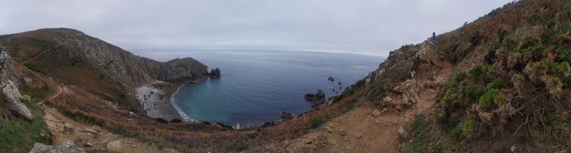 De retour sur le continent, nous suivons les conseils de notre hôte et nous allons voir le Nez de Jobourg, à l’extrême ouest de la péninsule du Cotentin. Les falaises surplombent la mer et une petite rando (on essaie de ne pas perdre l’entrainement débuté à la Réunion 😉) nous permet de longer le littoral et de profiter de vues plongeantes sur cette étendue d’eau. Il paraitrait que c’est encore plus beau quand le temps est terrible et que la mer se déchaine, nous n’avons pas eu cette « chance » 😁