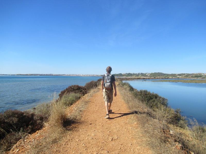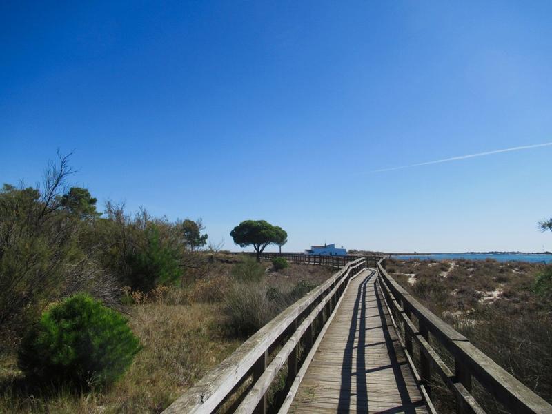 Nous arrivons ensuite au Ria Formosa, la vraie entrée cette fois-ci et après nous être acquittés de la modique somme demandée pour l’entrée (2.80€ par personne), nous voici partis à la recherche d’animaux (il parait qu’on peut trouver des caméléons) et à la découverte de ce parc naturel entre forêts, étangs et océan, chemins de terre et caillebotis. Nous n’avons pas réussi à apercevoir un caméléon, et pourtant nous avons cherché attentivement de toutes nos forces, mais sans succès. Même sans cela, le parc naturel est très beau et vaut vraiment le détour, de nombreux oiseaux profitent du soleil et les espaces sont magnifiques. Et puis, qui sait, tu auras peut-être plus de chance que nous ?! 😊