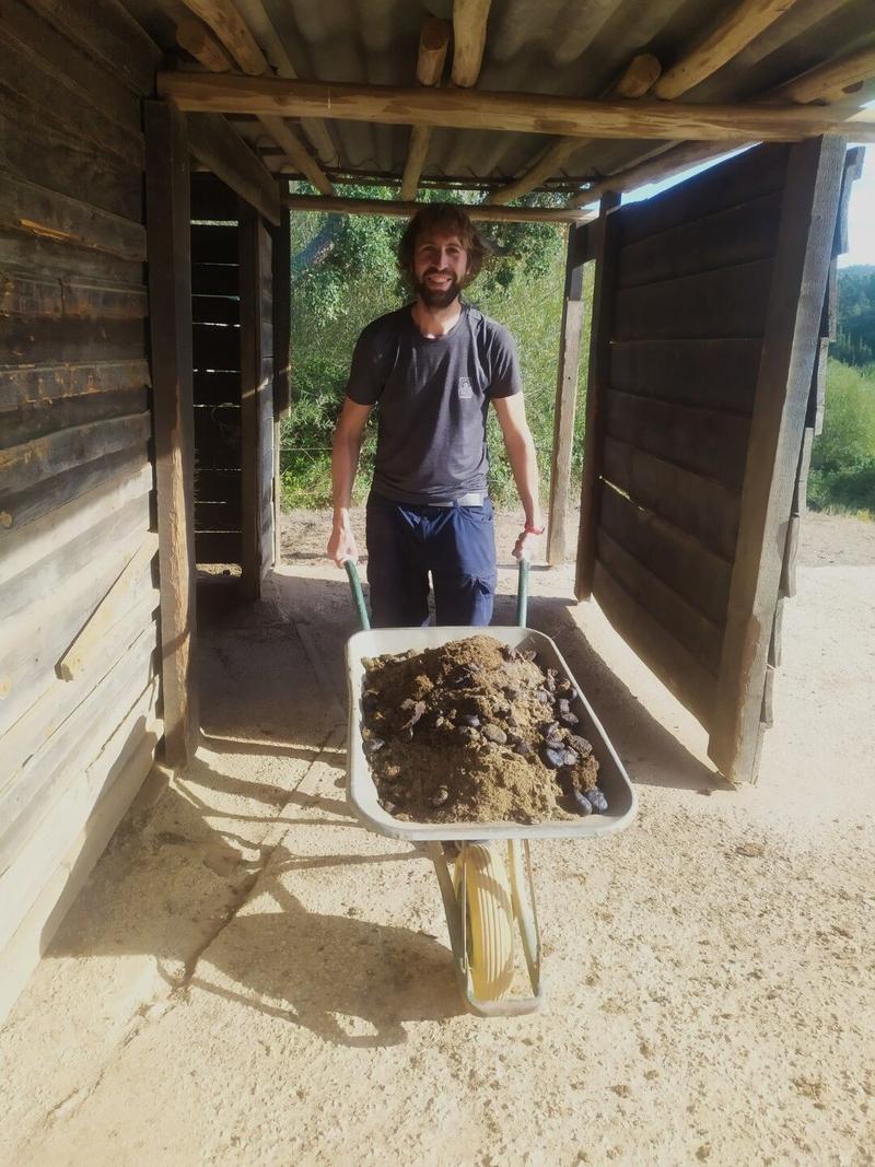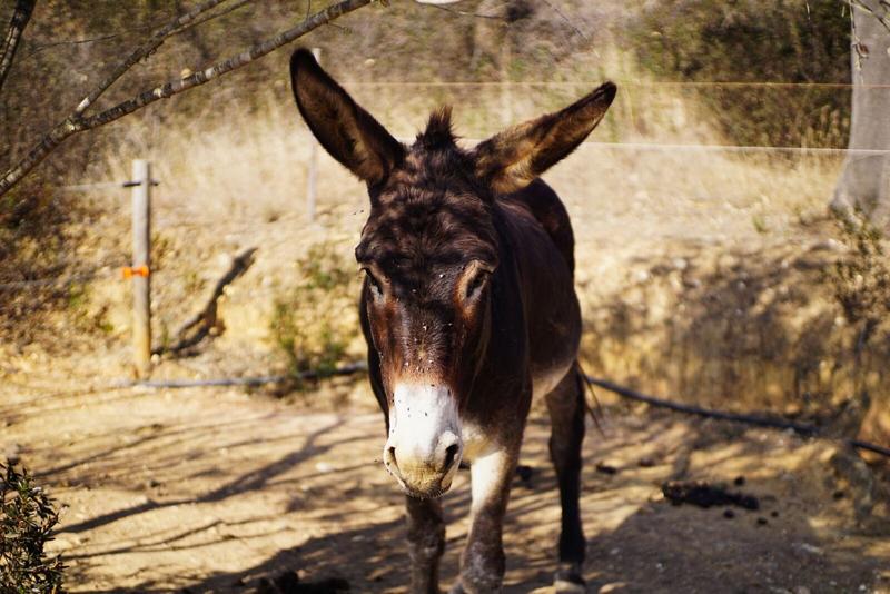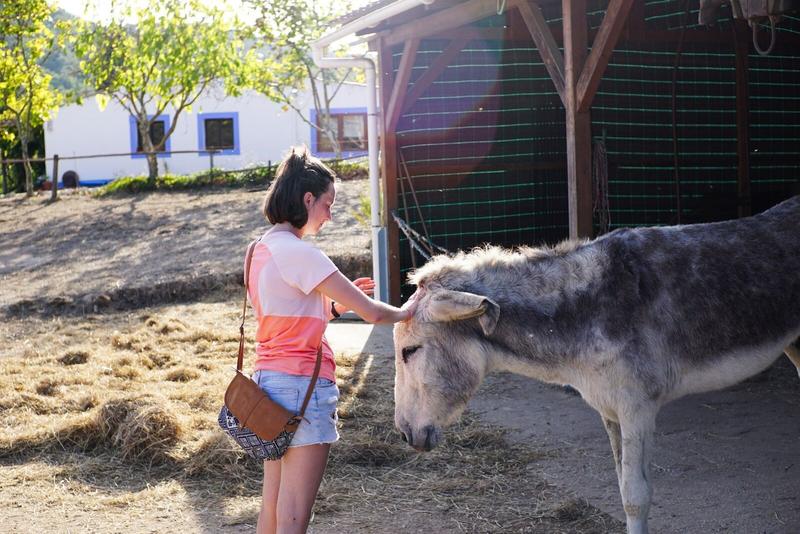 Nous terminons notre route, avant d’arriver à notre logement pour les prochaines nuits, par un refuge pour ânes appelés « burros e artes » (ânes et arts) qui propose des balades guidées, des treks de plusieurs jours en compagnie d’ânes ou des ateliers d’arts (poteries, peintures, etc). Bien sûr, nous n’avons rien réservé et nous nous pointons un peu par hasard, dans l’espoir d’apercevoir quelques animaux aux longues oreilles. Nous tombons sur une dame qui est occupée et qui nous demande si nous cherchons quelque chose, nous disons que nous voulions juste voir quelques ânes et elle dit qu’ils sont fermés. Dans un réflexe, je demande poliment s’ils n’ont pas besoin d’aide et, contre toute attente, il faut l’avouer, elle accepte ! En plus, elle est seule aujourd’hui et a encore pas mal de boulot, donc elle nous accueille à bras ouverts : nous voici donc occupés à ramasser du crottin d’ânes au plus près et au milieu de ces animaux que nous espérions apercevoir de loin. Nous avons droit à quelques explications sur le fonctionnement du lieu et sur l’histoire de certains de ces 19 ânes, qui ont chacun leur petit caractère. Nous n’avons malheureusement pas retenu le nom de chacun d’eux, mais c’était vraiment une très chouette expérience, bien inattendue pour le coup et nous avons adoré ce moment, en plus de la satisfaction de s’être rendus utiles !
