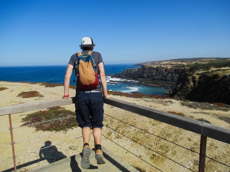Nous quittons notre logement pour continuer à descendre la côte en direction du sud du Portugal et de la région de l’Algarve. Sur la route, nous nous arrêtons pour admirer des plages, nombreuses et sauvages (plage du phare de Vila Nova de Milfontes, Furnas…) et pour visiter quelques villes (Odemira – qui possède un très chouette point de vue, sur la route, où nous nous arrêtons pour manger – Zambujeira do Mar…) et marcher un peu le long des côtes, du côté du « Farol do Cabo Sardão ». Le soleil cogne fort, il fait chaud et il n’y a pas un nuage et les villages sont souvent construits sur des petites collines, on ne se plaint pas, c’est beau, mais qu’est-ce que c’est chaud quand même ! 😜