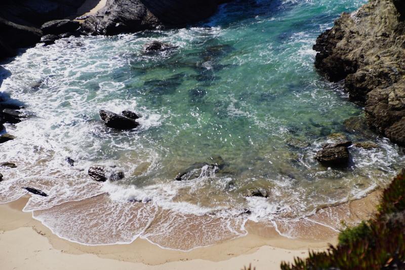 En contre bas, le parc possède aussi quelques plages dont certaines semblent être accessibles uniquement en laissant sa voiture à moitié sur la route puis en descendant la falaise. On opte pour une plus facile d’accès dont le parking est gratuit aujourd’hui car férié. Cela nous laisse quelques temps pour profiter de la chaleur d’octobre, encore bien présente au Portugal avant de reprendre la route vers Vila Nova de Milfontes, qui sera notre base pour les 2 prochains jours.
