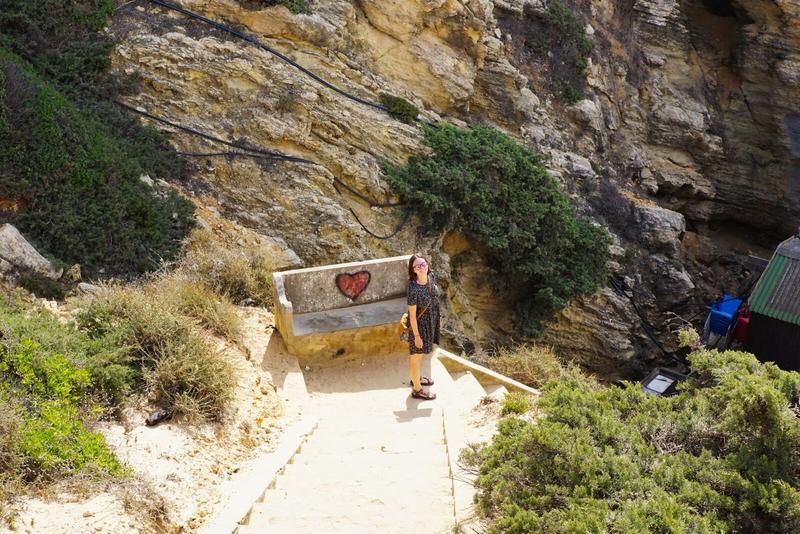 Nous nous posons ensuite sur la Praia do Beliche, accessible via de nombreuses marches en pierre où sont placés des bancs à certains endroits. La plage est encore une fois magnifique, entourée de falaises et assez grande pour accueillir du monde, sans se sentir écrasé. Lire sur ces plages au son de l’océan est vraiment reposant. Il est maintenant temps de remonter ces marches, on comprend mieux la présence des bancs.
