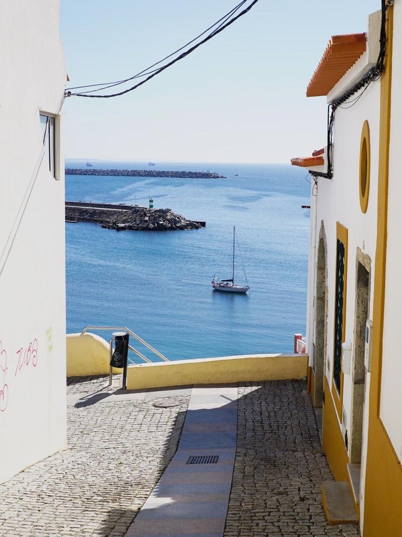 Aujourd’hui, petite journée, nous avons profité du logement ce matin : un bain, chose que nous n’avons plus vue depuis plus de 2 mois ! 😁 Nous allons voir la vieille ville de Sines, sur la côte Ouest pile entre Lisbonne et l’Algarve. Sines c’est aujourd’hui un grand port et une grosse ville construite autour d’un château et de quelques rues historiques. Nous commençons par nous trouver de quoi manger, un assortiment de samoussas, nems et empanadas, puis nous nous posons sur la plage pour goûter ça au soleil. La plage est vide, le soleil bien présent et la nourriture excellente ! Nous nous baladons ensuite dans les rues de Sines et sur les remparts du château.